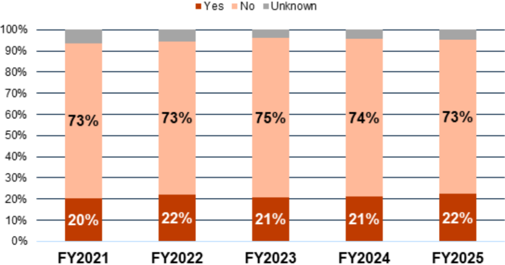 Twenty-two percent of the undergraduate student body had neither parent attend post-secondary education, compared to 60% of students who may have had a parent participate in post-secondary education but neither has earned a bachelor’s degree.
